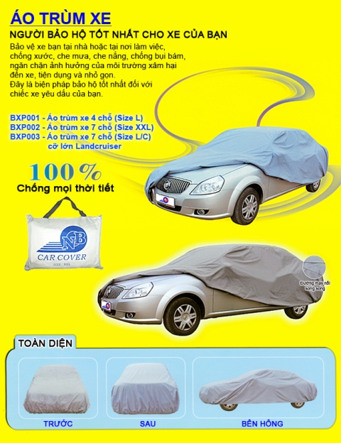 - Là sản phẩm chuyên dụng dành cho xe hơi, giờ đây chiếc xe của bạn sẽ không còn bị nóng, ướt nhẹp, bị va quẹt hay bụi bẩn với thời tiết thất thường, khó chịu.
