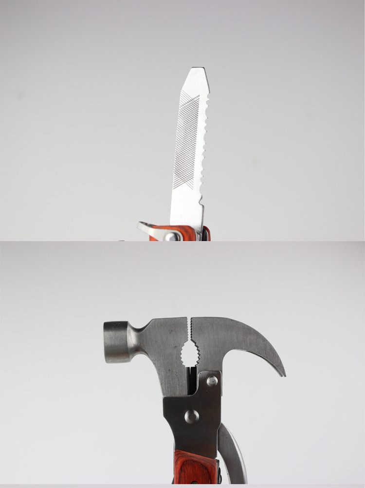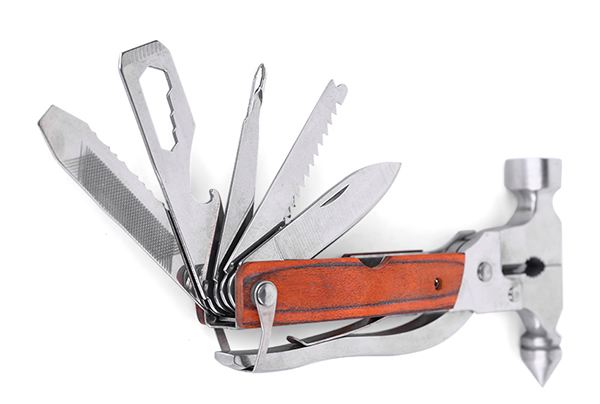 - Búa thoát hiểm, cứu hộ đa năng có nhiều chức năng như búa phá kính, búa đóng đinh, lưỡi dao, lưỡi cưa, đầu vít pake, đầu khui đa năng, mài dũa, kềm.