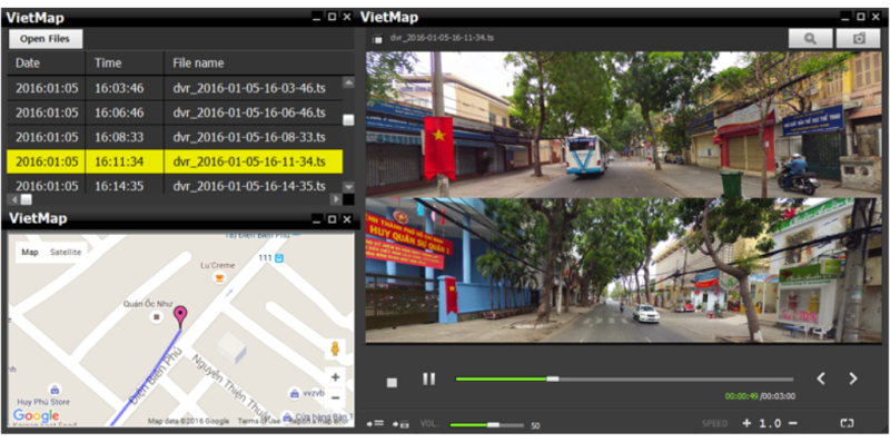 Ghi hình với thông tin tọa độ, tốc độ, bản đồ