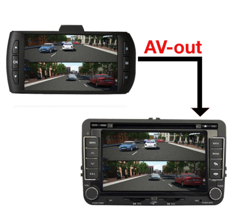 Kết nối trực tiếp với màn hình DVD trên xe qua cổng AV-out để xem video trực tiếp trên màn hình to.