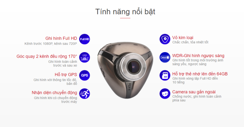 VietMap X11 ghi hình cùng lúc trước và sau, camera trước ghi hình độ phân giải 1080p, camera sau ghi hình độ phân giải 720p
