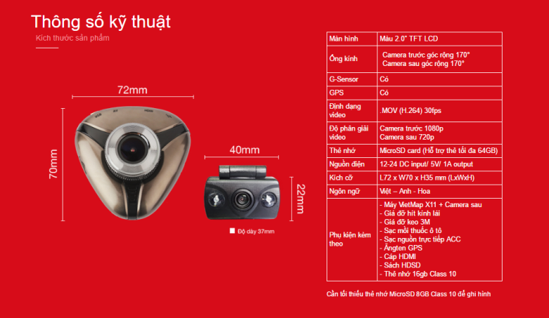 Cần tối thiếu thẻ nhớ MicroSD 8GB Class 10 để ghi hình