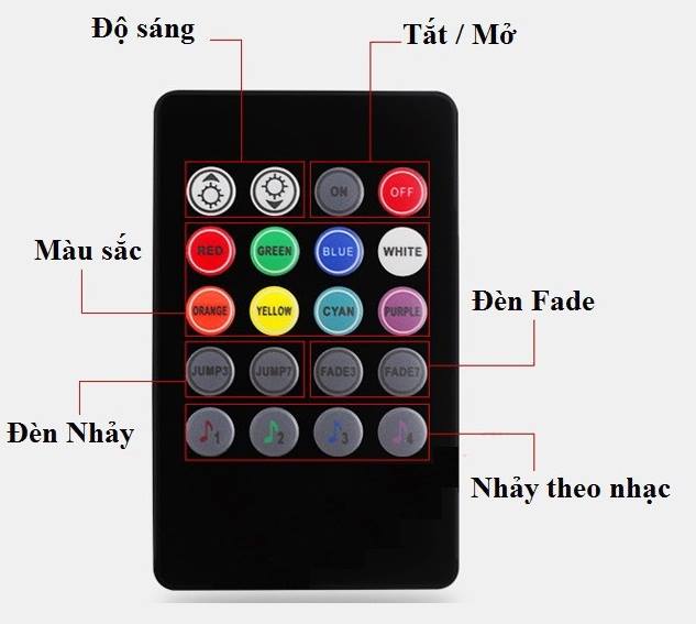 | Đổi màu theo nhạc | Đổi nhiều màu khác nhau | Nháy tango | Tăng giảm màu |