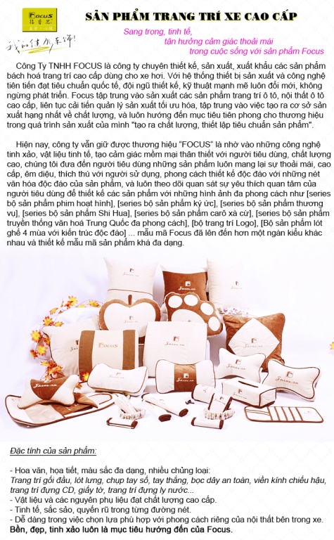 - Do đó Gối đầu dẹp cao cấp Focus là một phụ kiện không thể thiếu. Chúng rất hữu ích khi bạn muốn thư giản ngay trên chiếc xe của mình, hay trên những chặng đường dài.