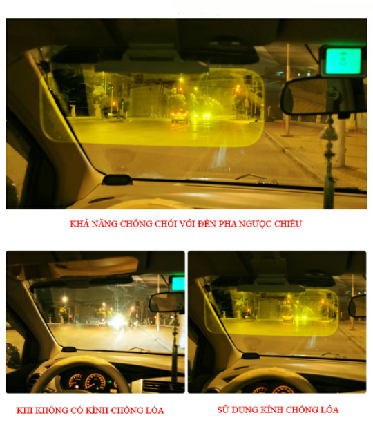 - Ánh sáng mặt trời và ánh điện chiếu thẳng vào kính lái làm cho bạn rất khó chịu, và gây nguy hiểm cho bạn mỗi khi lái xe. Giờ đây, với kính chống lóa ôtô ngày và đêm sẽ giúp bạn tập trung hơn mỗi khi di chuyển xe trên đường, và hạn chế những tia cực tím chiếu thẳng mắt gây mỏi mắt và làm mờ tầm nhìn của bạn. Kính được thiết kế đặc biệt, tỷ lệ chặn ánh sáng của tia cực tím UV khoảng 92-99%, tạo cho bạn cho bạn có tầm nhìn rõ nét, không bị mờ hay bị lóa mỗi khi ánh nắng mặt trời chiếu trực tiếp. Và kính còn có khả năng làm giảm các nguồn ánh sáng có hại gây ra sự mệt mỏi cho mắt. Bề mặt kính có độ dày cao, chịu lực và chống va đập tốt.