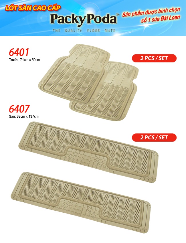 Lót sàn ô tô Packy Poda là sản phẩm cao cấp của Đài Loan, sản xuất theo công nghệ tiến tiến đem lại độ bền cao, là phụ kiện thiết thực và hiện đại cho mỗi chiếc ô tô, mang lại sự tiện lợi, hài lòng cho người sử dụng.