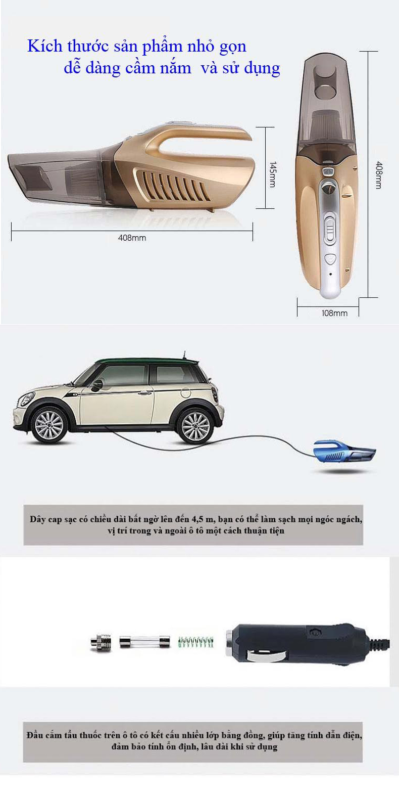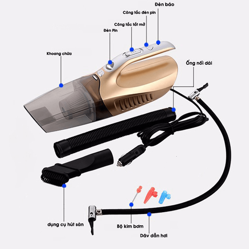 - Bộ sản phẩm có nhiều đầu hút giúp hút mọi vị trí trên xe