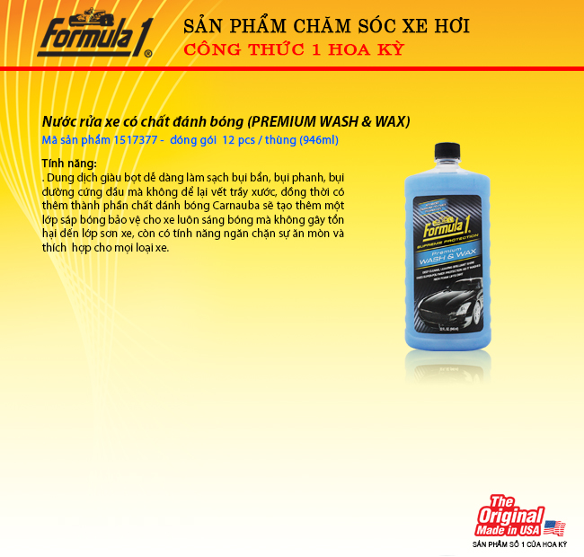 GIỚI THIỆU SẢN PHẨM NƯỚC RỬA XE PREMIUM WASH & WAX FORMULA 1 - USA