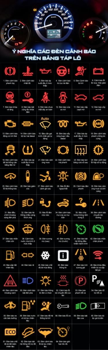 bảng thống kê tất tần tật các ký hiệu trên bảng táp bô xe có thể xuất hiện.